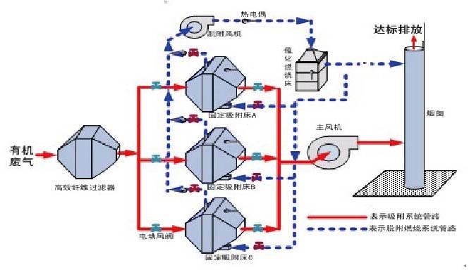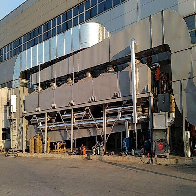 設(shè)備原理: 在催化劑的作用下,有機(jī)廢氣在較低的起燃溫度下(250~400℃),發(fā)生無焰燃燒,碳?xì)浠衔锉谎趸纸鉃?/span>CO2和H2O,同時(shí)放出大量熱能,從而達(dá)到去除廢氣中的有機(jī)物的目的,該方法是凈化有機(jī)廢氣、消除惡臭的有效手段之一。 含VOCs的廢氣經(jīng)風(fēng)機(jī)導(dǎo)入換熱器,經(jīng)由換熱器加熱后,再通過催化燃燒器,這時(shí)廢氣已被加熱至催化分解溫度,通過催化劑床,催化分解會釋放熱能,而VOCs被分解為二氧化碳及水。經(jīng)凈化后氣體溫度升高,再次進(jìn)入換熱器與未經(jīng)處理的VOC廢氣進(jìn)行熱交換,以此減少能源的消耗。后,凈化后的氣體從煙囪達(dá)標(biāo)排放到大氣中。 催化劑:優(yōu)選貴金屬催化劑(Pt、Pd和Au),具有起燃溫度低(280℃起燃),去除效率高(>95%),具有較高催化活性,同時(shí)還耐高溫、抗氧化、耐腐蝕。催化劑改變化學(xué)反應(yīng)速度而本身又不參與反應(yīng),反應(yīng)前后基本沒有消耗,使用壽命長。 廢氣預(yù)處理:為了避免催化劑床層的堵塞和催化劑中毒,廢氣在進(jìn)入床層之前必須進(jìn)行預(yù)處理,以除去廢氣中的粉塵、液滴及催化劑的毒物。 預(yù)熱裝置:催化劑都有一個(gè)適宜的催化活性溫度,對催化燃燒來說稱為催化劑起燃溫度,必須使廢氣和床層的溫度達(dá)到起燃溫度才能進(jìn)行催化燃燒。對于排出的廢氣本身溫度就較高的場合,如漆包線、絕緣材料、烤漆等烘干排氣,溫度可達(dá)300℃以上,則不必設(shè)置預(yù)熱裝置。